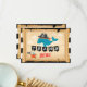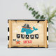 Pirate Captain whale and starfish matey holding a ragged cross-bone flag over vintage treasure map and black and white stripe print background thank you card.