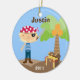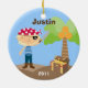 This Customizable Pirate Christmas Ornament can be personalized with your Child's Name and the year. It makes a great stocking stuffer or Christmas Gift. It features a cute little pirate, treasure chest and palm tree.