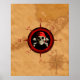 Classic Skull and Crossbones, The Jolly Rodger”, with red bandana rag in the center of a vintage style Compass Rose over a vintage nautical map of the Key Islands of Florida.