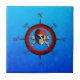 Classic Skull and Crossbones, The Jolly Rodger, with red bandana doo rag in the center of a vintage style Compass Rose and a deep blue sea background.