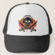 Pirate DJ design features skull with headphones and crossed swords over dripping orange paint. Dedicated to the pirate DJs who keep the music alive.