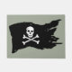Enter this house at your own risk! Classic "jolly roger" pirate flag with skull and crossbones waving in the wind.