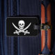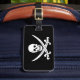 A classic, white on black Jolly Roger, skull and crossed swords, known as the Rackham flag, warns all to keep their hands off your bag! On the reverse, a template for you identification. Just type into the boxes under "personalize it" to make it yours.