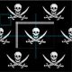 Pirate flag skull and crossed swords Jolly Roger. The flag is associated with John Rackham, commonly known as Calico Jack.