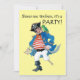 A party invitation with a pirate with a wooden leg, eyepatch and a parrot on his shoulder. You can customize the reverse of the card with the details of the party.