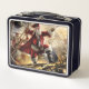 This is a standard metal lunchbox that appears to work just fine. We designed this box ourselves with an uploaded photo and custom text on the front and back. It looks absolutely beautiful except the front of the lunchbox is not centered like it shows in the photo. The print borders don't align with the inset flat part of the box where the preview photo online showed it perfectly centered in there. The back looks nice and centered though.