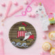 Old wood plank paper plate with fun pirate ship to compliment our "Pirate Voyage" Birthday party invitation set.