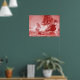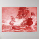 PIRATE SHIP BATTLE IN ANTIQUE RED POSTER