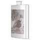 The product is a good size and came exactly as it was pictured. The lid is not attached to the flask, which could be dangerous on drunken nights... The print came out surprisingly well and looks very sharp. Would definitely recommend.