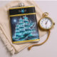 A stunning Pirate Ship with billowing sails glides effortlessly over luminous waves under a bright full moon. The waters shimmer with enchanting blue hues, creating a magical atmosphere that highlights the vessel's grandeur and the surrounding tranquility.
