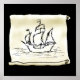 An image of a scroll with a pirate ship on it. This pirate ship galleon design was sketched using a graphics tablet, to give an effect similar to a black ink drawing. The flat printed image has a look of an old piece of paper or parchment scroll. The ship and parchment design on this item is a digital art image, it is a flat, printed design, not raised or textured.