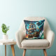 Pirate Ship Sailing Through Stormy Seas at Dusk Throw Pillow