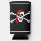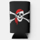 Can cooler shown in a solid color of black with a pirate skull print.