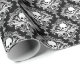 Elegant yet edgy black and white damask wrapping paper with a gothic pirate twist. Classic baroque flourishes and ornate floral motifs are formed entirely from skull and crossbones symbols, creating a striking Jolly Roger–inspired damask pattern.