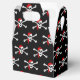 Party favor box shown in black in a gable style with a cute pirate skull print.