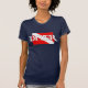 The material is a great quality that is hard to find with most tee shirts. Fabric was not see-through or thin at all, but was also very soft and comfortable. The shirt description states that it runs a little small, so I sized up one size for a perfect fit! I would definitely buy this type of tee shirt again because I love the fit and high quality fabric that I cannot find anywhere else. The printing was perfect and just as pictured. Loved the cute quote and really enjoy the tee in both the quality and design. I love quirky typography designs and funny quotes and I am extremely pleased with the overall quality and value I get at Zazzle!