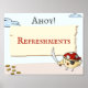 Complement your birthday pirate party with this personalized poster to indicate where the refreshments are. Personalize all the the text with your own information or language. Illustrated and designed by Patricia Alvarez.