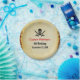 Ahoy ye Hearties! Time to get ship shape for a pirate party! Fun design on old parchment with skull with crossed swords on top. You can customize the name, age and date. Avast – don’t delay.
