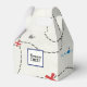 This favor box features a weathered treasure map with dotted trails and large red "x marks the spot" crosses. Bright blue sailboats, ocean waves and cheery gray whales are dotted throughout like the maps of yesteryear. Front of the box reads "Treasure Chest". Personalize the back with your child's name, age and name of the event. Great for pirate or nautical themed birthday parties.