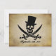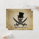 A classic Jolly Roger, with optional top hat, on an antique grunge look background and room for all your invitation details in pirate talk!
