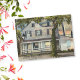 Historic Pirates House inn and restaurant in Savannah, GA is illustrated by the Tichnor Brothers in the 1930s-40s with this beautiful gray wood house and black+white pirate's flag out front. It's nestled in the Trustees' Gardens which is one of the first experimental gardens in America. It was an Inn for sailors, prior to WW2, dilapidated afterwards, and restored as a famous restaurant in 1945 as it still is today.