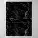 A Pisces Zodiac astrology constellation map engraving by Hevelius circa 1690 on a solid black background. A vintage racy design for a great custom birthday gift idea for anyone Pisces.