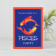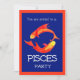 Party invitations for a Piscean with two brilliant orange fish on a deep blue background, from a watercolour painting by Judy Adamson. 'You are invited to a PISCES party' is written in white text and the back is left blank for you to add the details of the party.