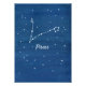 A poster featuring the constellation for Pisces in the night sky with an indigo watercolor wash background. Fun poster for you or to give to a Pisces friend. You can find the other star sign constellations on a variety of items in my shop.