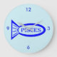 This awesome clock features an outline of a blue fish with pretty detailing inside. There is also text that says Pisces inside the outline of the fish. This design is ideal for people with Birthdays Between 19 February and 20 March.