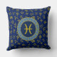 Pisces Zodiac+Astrology Symbols Pattern Gold+Blues Throw Pillow