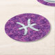 Pisces Zodiac Sign on Fuchsia Digital Camo Round Paper Coaster