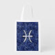 Pisces Zodiac Sign on Navy Blue Digital Camouflage Reusable Grocery Bag
