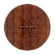 A Pisces Zodiac Sign rendered in a rich Mahogany wood grain style design print background. A classic design for a great custom birthday gift idea.