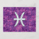 Pisces Zodiac Symbol on Fuchsia Pink Digital Camo Postcard