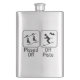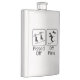 The product is a good size and came exactly as it was pictured. The lid is not attached to the flask, which could be dangerous on drunken nights... The print came out surprisingly well and looks very sharp. Would definitely recommend.