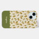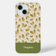 A phone case with a pattern of Pistachios and green polka dots on a light brown background and, at the bottom, a customizable first name or text of your choice on a green background. A lovely gift for a friend who loves nuts.