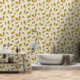Wallpaper with pistachio pattern and green polka dots on a light brown background: a perfect gift for a lover of nuts or for your home decoration.
