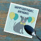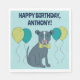 Throw a paw-some dog-themed birthday party with these personalized party supplies. These paper napkins are ready to be customized with your message and feature an illustration of a pit bull puppy wearing glasses and a bow tie surrounded by party balloons.