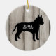 Pit Bull rustic wood ceramic ornament with cute silhouette against a faux wood background. Personalize with your dog's name and the year. You could also use this as a memorial ornament but changing year to birth/death years. Other breeds and patterns are available in our shop (see collection link for other breeds/colors) and let me know if you cannot find your breed: info@lemontreecards.com