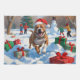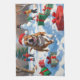 Pitbull Dog Running in Snow with Christmas Hat Kitchen Towel