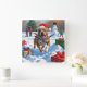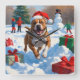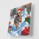 Pitbull Dog Running in Snow with Christmas Hat Square Wall Clock