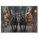 This festive design captures the joyful spirit of the holiday season, featuring an adorable dogs.Nestled in a winter wonderland, complete with a decorated Christmas tree, and beautifully wrapped presents. Snowflakes gently fall, adding a magical touch to the scene, while the vibrant colors of the holiday decorations create a warm and cheerful atmosphere.