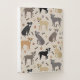 Cute Pitbull with black, fawn, brindle, blue and red coat colors with paw prints and dog bones pattern.