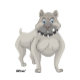 Illustration of a gray bulldog with a spiked collar, the dog has a stern expression with furrowed brows and a slightly visible tooth, the dog's body is muscular and stocky, with defined contours, the color palette is limited to shades of gray, black, and white, with a touch of blue in the eyes, the style is cartoonish with bold outlines and flat shading, the word "Wow!" is written in bold black letters at the bottom left.