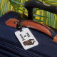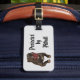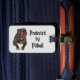 This luggage tag says, "Protected by Pitbull" and shows a handsome photograph of a muscular Blue Nose Pitbull named Sarge. This product is easy to customize with your own contact information and makes a perfect luggage tag for every Pitbull lover. Sarge is seen in this photograph with his tongue out and the corners of his mouth turned up in a classic Pitbull smile.