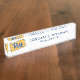 The product was just like it was in the pics, everyone at work loves it! Came on time and it was neatly packed. Bold and Clear. My name can be seen from far and it matches in color.