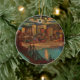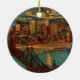 Vintage postcard showing downtown Pittsburgh by moonlight in 1931 with a view of the Monongahela River, a railroad bridge spanning it and the buildings of downtown lit at night. Reprinted on this beautiful Christmas ornament.