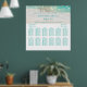 PixDezines seating chart, featuring turquoise blue ocean with white sandy beach, strings of lights and a faux gold foil chandelier silhouette. PixDezines' designs allow you to edit any elements of the design.