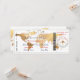 PixDezines DIY your location boarding pass save the date for any destination wedding with faux gold world map and a tiny red heart to indicate your destination.