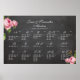 PixDezines whimsical chalkboard accented with Pierre Redoute's illustrations of pink roses. Wedding seating chart by Alpha... utilizing poster stock or canvas.